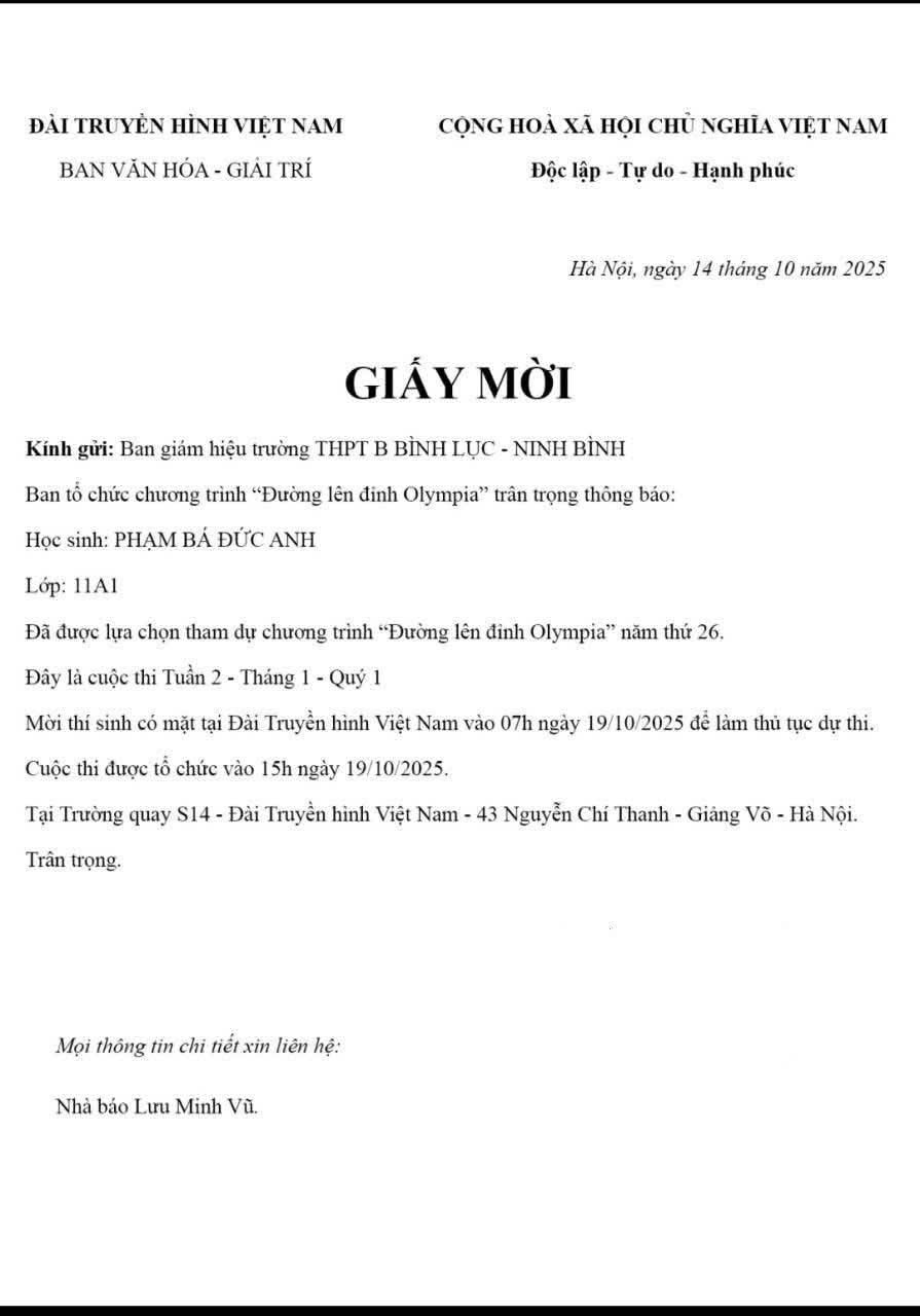 Chúc em bình tĩnh tự tin đạt kết quả tốt mang vinh quang về cho quê hương Tam Nguyên Yên Đổ, Bình Lục