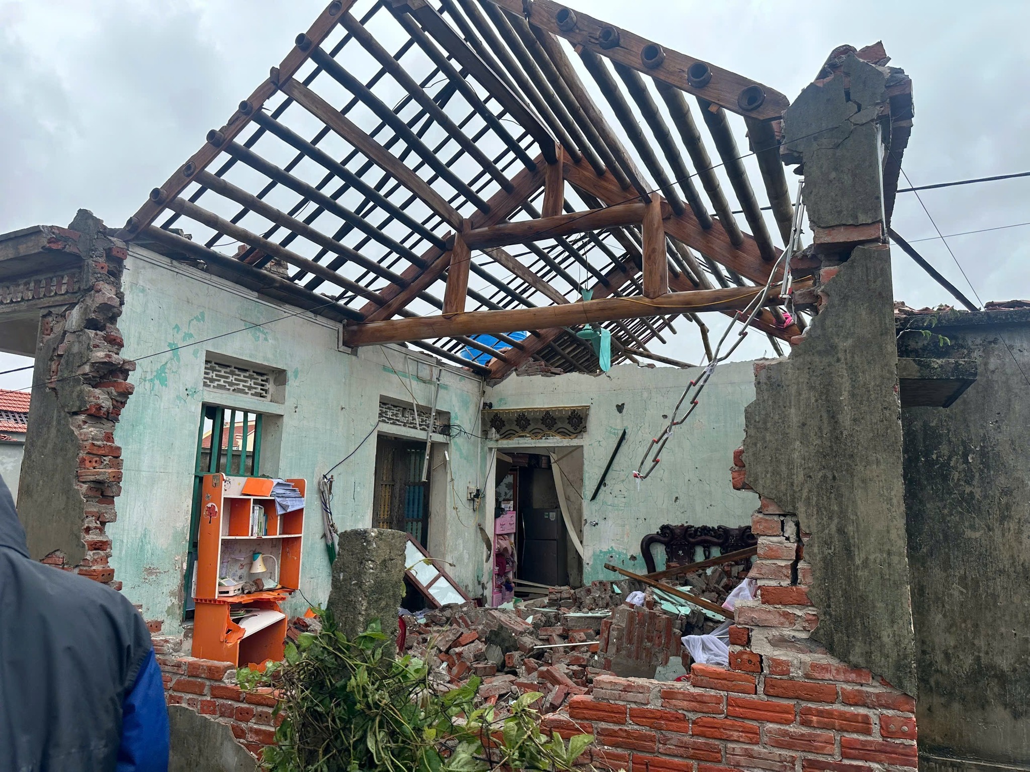 Rạng sáng 29/9/2025, tại khu 3, xã Hải Thịnh, một cơn lốc lớn bất ngờ cuốn sập mái nhà cấp 4 nơi vợ chồng anh Nguyễn Văn Hiệu (SN 1986) và chị Nguyễn Thị Kiều (SN 1989) đang nằm ngủ.