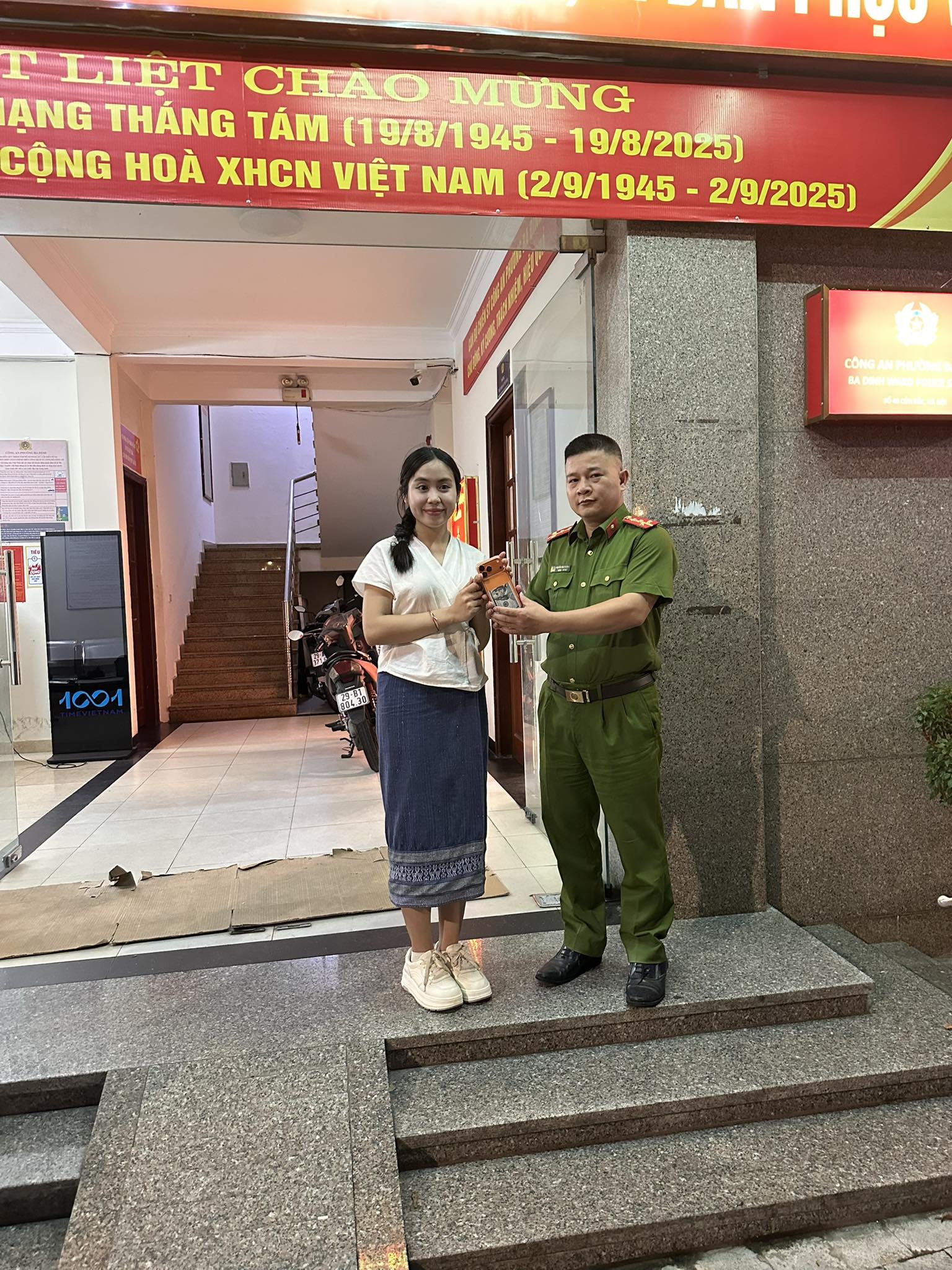 Chỉ sau 3-4 tiếng sau khi cô gái Lào Mayssa thông báo bị kẻ gian móc mất điện thoại tại Khu vực Hoàng Thành Thăng Long. Các đồng chí CA Phường Ba Đình – Hà Nội đã tìm lại được điện thoại cho cô